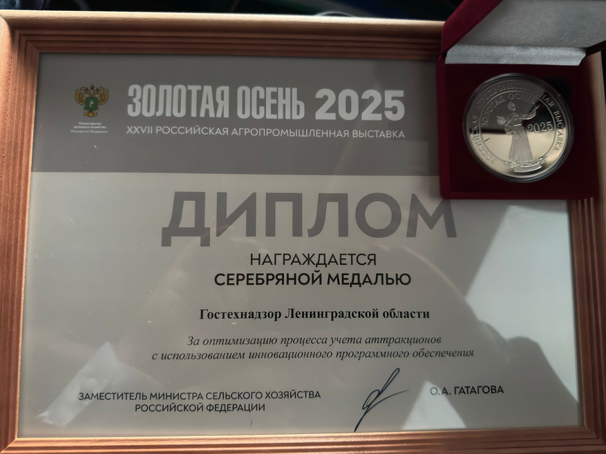 Минсельхоз России наградил Гостехнадзор Ленинградской области золотой и серебряной медалью на агропромышленной выставке «Золотая осень-2025»